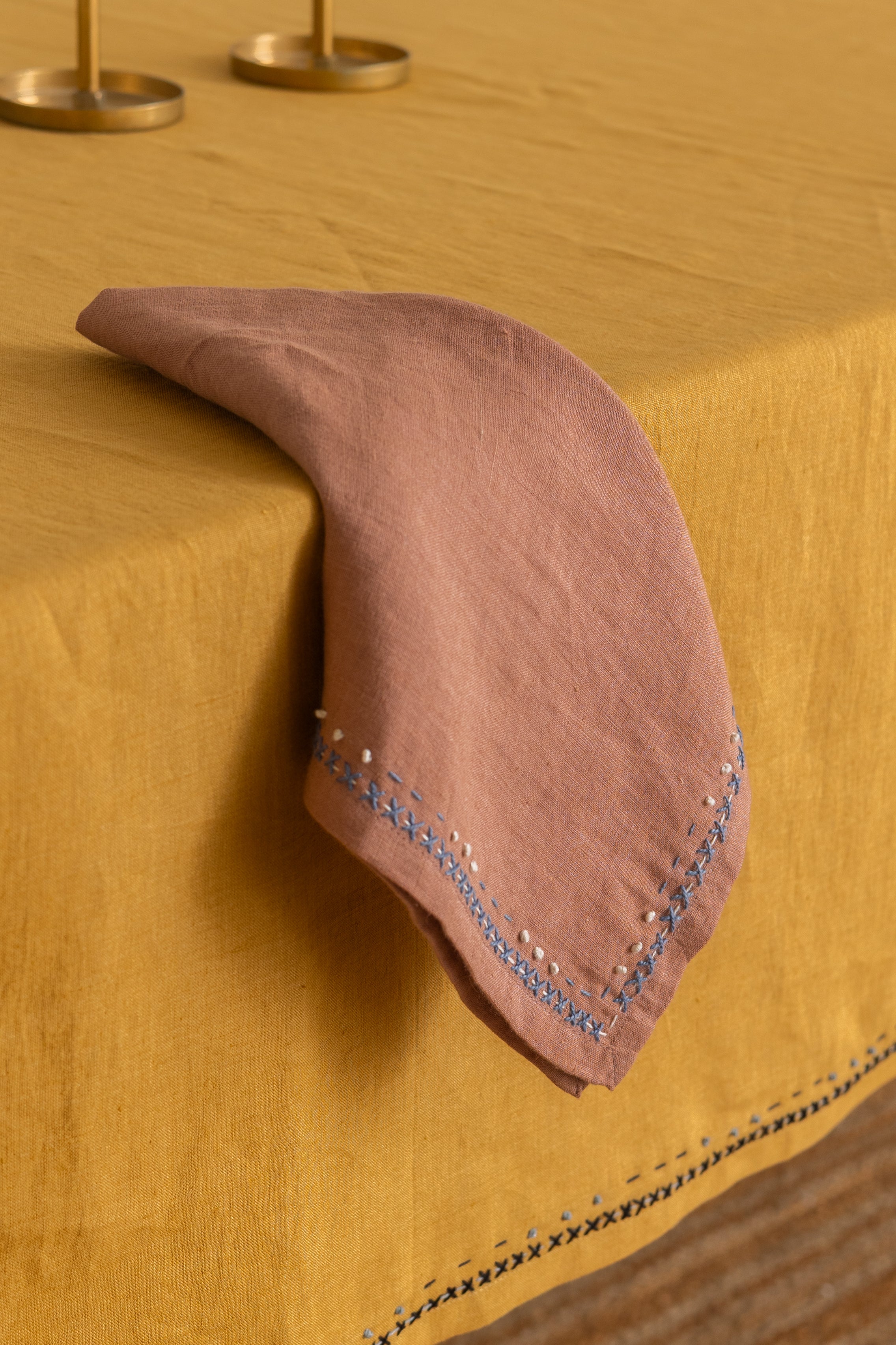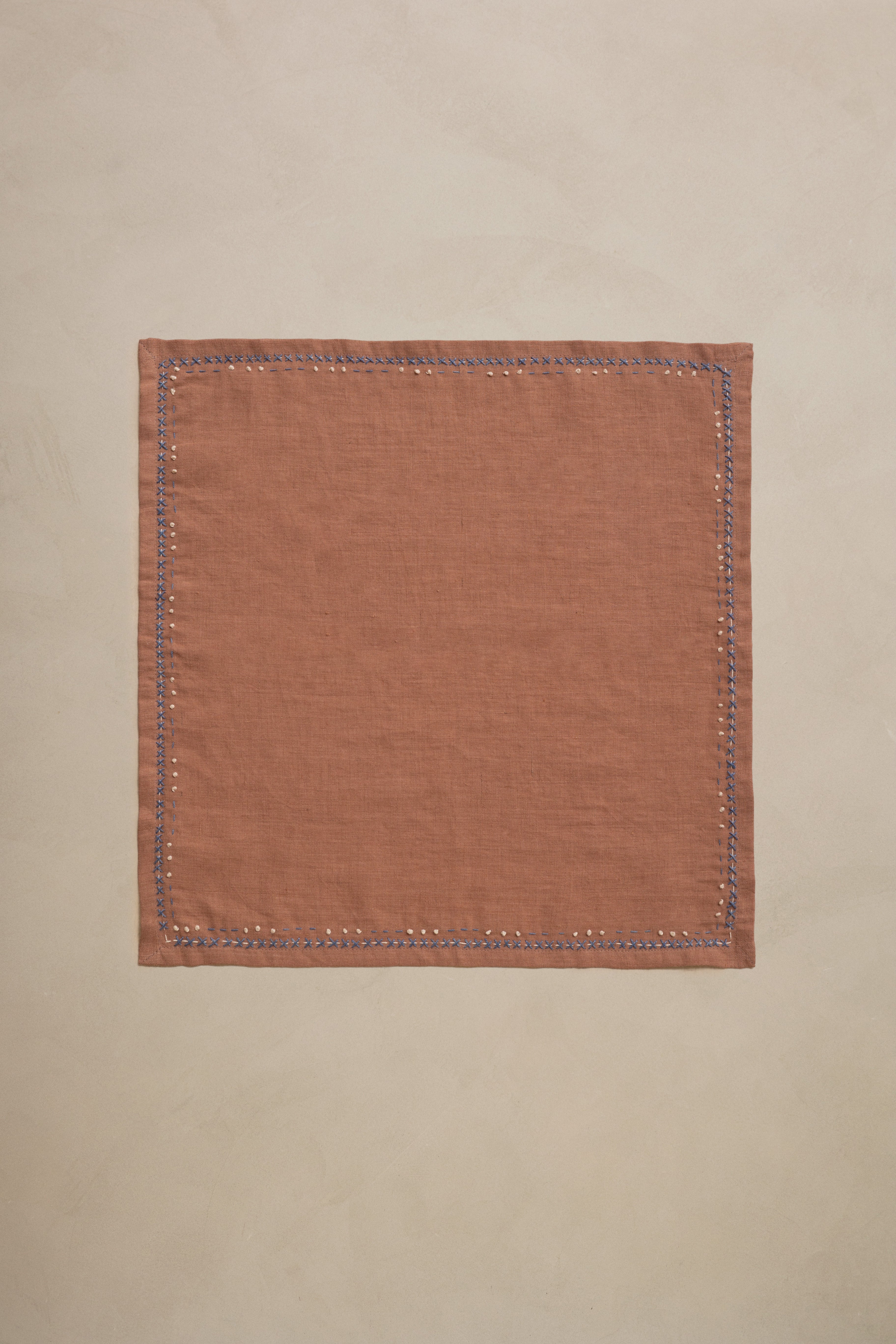 Turn every gathering into an elevated dining experience with the Linen Boho Napkin Set. Crafted from 100% linen, each napkin showcases beautiful handwork by skilled artists. The unique kantha and French knot styles elevate your table decor, making every meal an occasion to remember. This handmade napkin set not only adds elegance but also embodies sustainability and Heirloom quality. Discover the charm of India’s artisanal traditions with this exquisite napkin set, perfect for any dining setting.