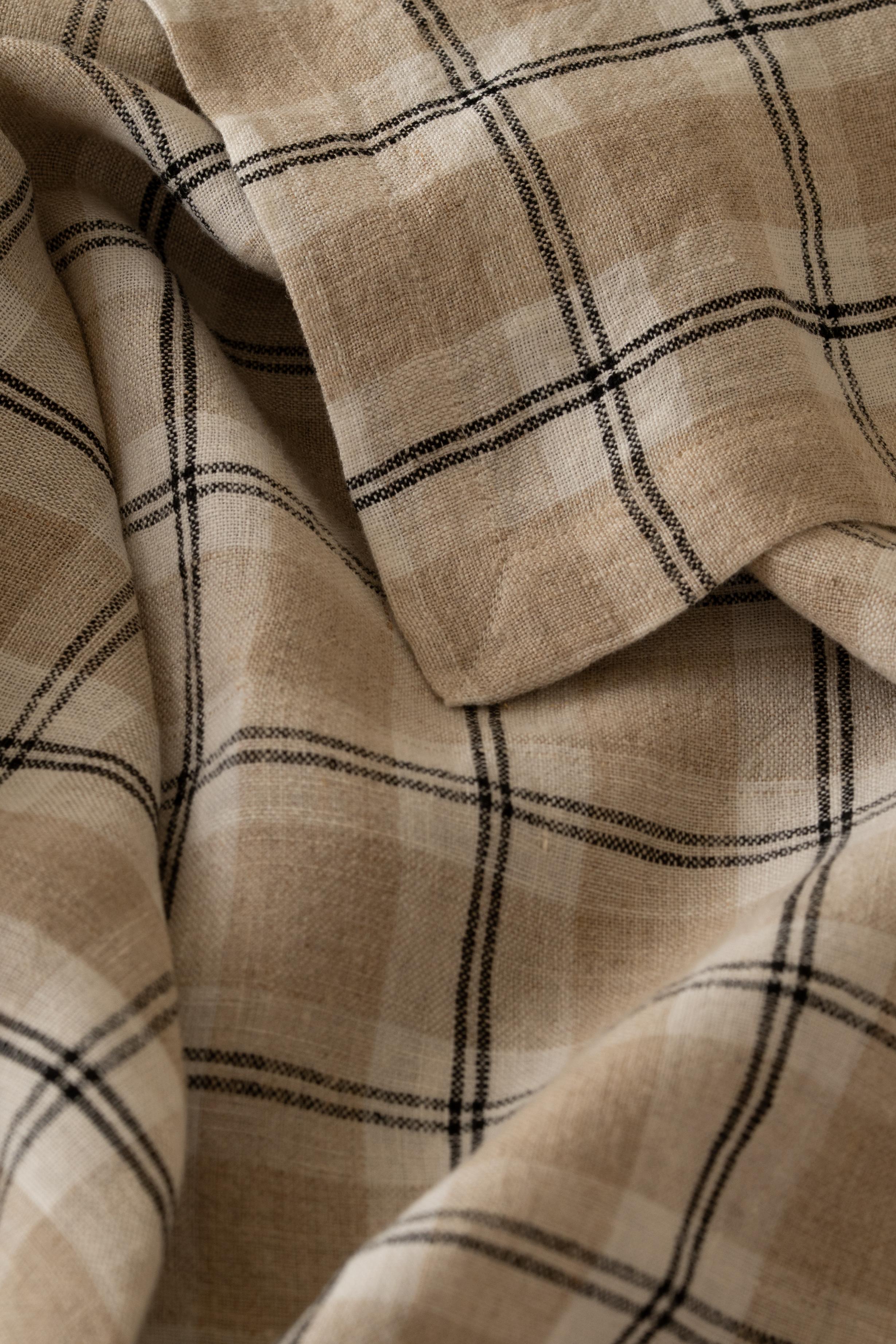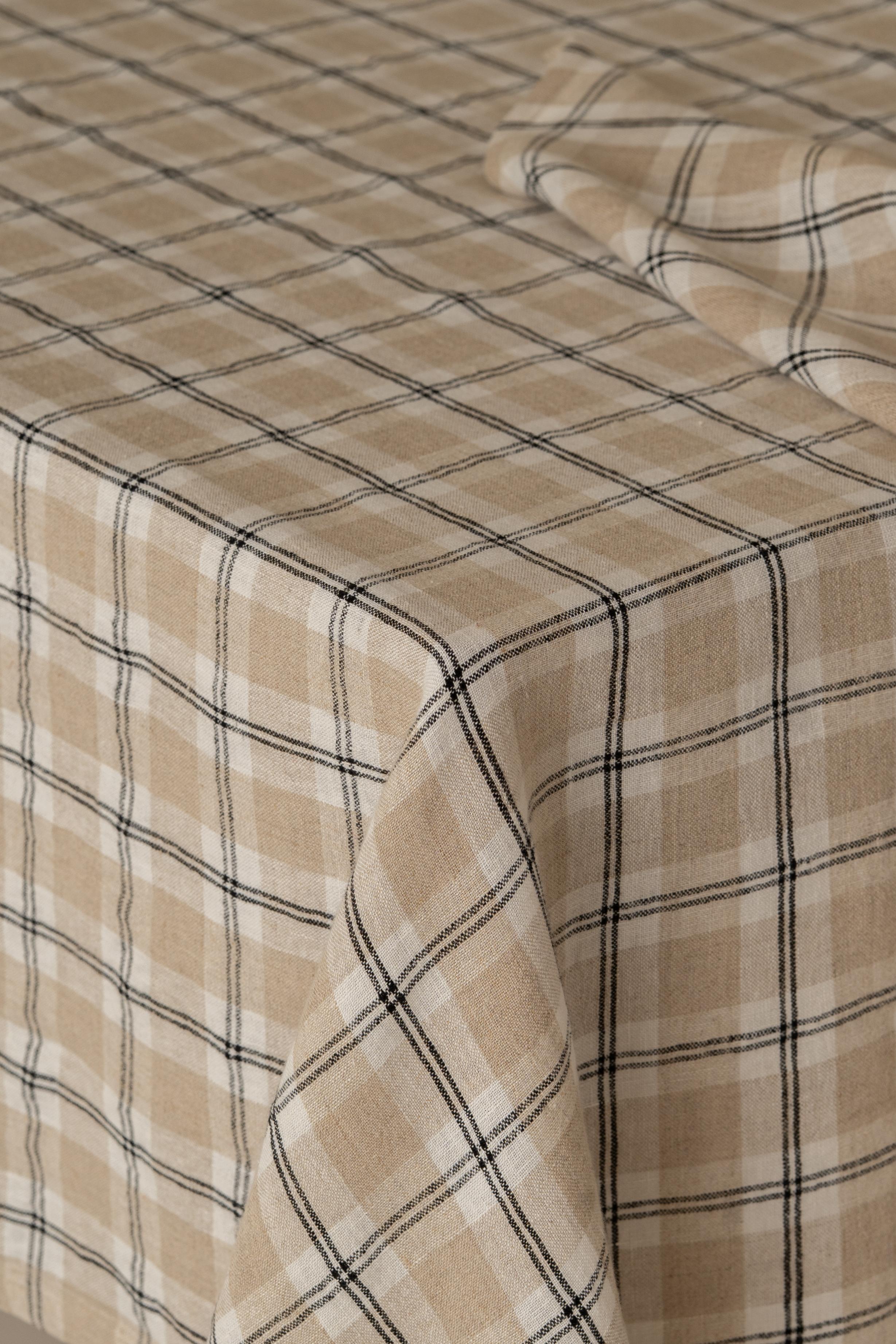 Explore the beauty of Linen Vincent Tablecloth, featuring an artful checkered pattern. It is designed to charm your dining experience and for everyday use being an easily washable creation.